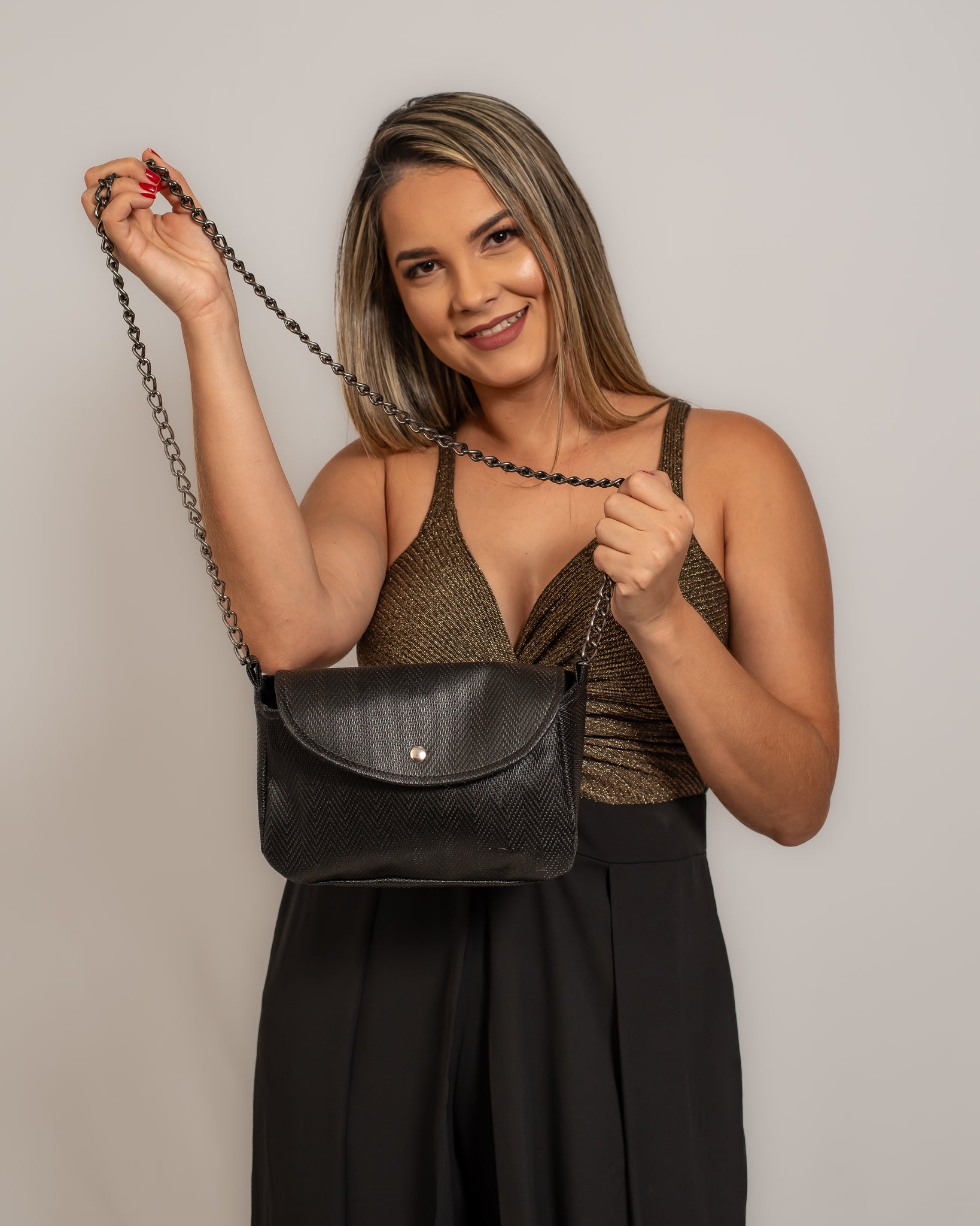 Bolsa assinada pela Debora De Marco trás consigo um visual compacto em um luxuoso tom preto com correntes prateadas. Perfeita para mulheres que desejam um acessório para guardar o essencial e não abrir mão de ter um produto de alta qualidade e sofisticação.,